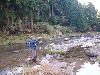 ★河川のようす★ 午後、写真を撮影した中の橋下流では力尽きたオオサンショウウオの姿がありました。 流れの緩い淵では中層付近にカワムツが群れています。