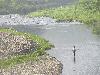 お昼過ぎに通り雨に見舞われ、夕方になって晴れ間が戻ってきました。気温は27度程度に下がっていますが蒸し暑い状況。 今のところ水況に変化はありません。水量は平水時の約10cm減。水温約26度。濁りはありません。