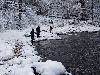★河川のようす★ 本日は降雪もあってか、放流時は40名程度のお客様とのことでした。午前中の釣果は最多で花脊製材所下流で西京区の松本様が41匹。椿橋上流では20匹,その他の釣り人さんのお話では、2匹から10匹(監視員さんのお話では、午前中は10匹前後の方が多かった印象とのことでした)といったところです。 大悲山口では尺近いサイズのあまごが掛かったとのこと(おそらくお楽しみ企画で放流した個体と思われます)。